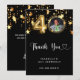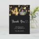 A thank you card for a 40th birthday. A black background colour. With faux gold stars. Add your photo. On front: number 40 written with a balloon style font. Thank You, your text, title and a date.