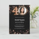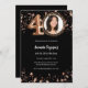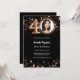 A modern, stylish photo invitation for a 40th birthday party. A black background, decorated with rose gold stars. Personalise and add your party details.