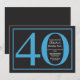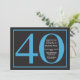 40th Birthday Invitation. Blue and Black Birthday Party Invite with Chalkboard Background. Surprise Birthday. Adult Birthday. Men or Women Bday Bash Party. For further customisation, please click the "Customise it" button and use our design tool to modify this template.