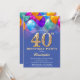 40th Birthday Blue and Gold Colourful Balloons Invitation