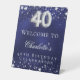 40th Birthday blue silver stars welcome party Pedestal Sign
