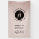 On a background of delicate girly blush pink our vertical 40th Birthday party banner features a sparkling blush glitter ombre overlay for extra party glam. Inside a black and rose gold circle logo, bubbling champagne glasses clink together in a toast to the birthday honoree. You can easily revise the milestone birthday details on the personalisation template.