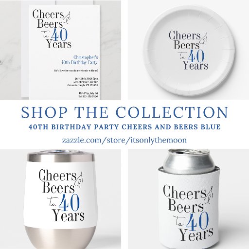 40th Birthday Party Cheers and Beers BlueDesigned by Only The Moon