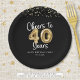 40th Birthday Cheers to 40 Years Black Gold Paper Plate