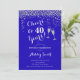40th Birthday Invitation. Cheers To 40 Years! Elegant design in royal blue sapphire, white and silver. Features champagne glasses, script font and confetti. Perfect for a stylish fortieth birthday party. Personalise with your own details. Can be customised to show any age.