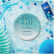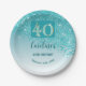 40th Birthday Chic Falling Teal Blue Glitter Paper Plate