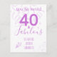 Celebrate the next decade! Make it worthy of the event it is with this fabulous, festive and fun design with hot pink purple typography, inviting all to join in the celebration of the 40 and fabulous guest of honour, personalised with her name. Hot pink or purple text on a background of muted pink streamers and confetti. Appropriate for sobriety by easily deleting the wine glass graphic. Is the guest of honour turning an age other than 40? Easily change the age by clicking to personalise it and change the Age fields.