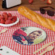 Template for Your photo. White text overlay: Hello 40! A paper plate for a 40th birthday party for him. Matching paper napkins available in our store!