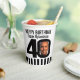 Personalise these mono 40th birthday party paper cups with your own birthday name and two photograph in the 0 of 40. Fun text and personalised photo design. Ideal for using at a fortieth birthday party to show a photo of your birthday boy or girl now and one from their past. Other matching fortieth birthday party items are available. © Original graphic art and design by Sarah Trett for www.mylittleeden.com