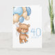 40TH birthday cute blue balloons boy teddy card