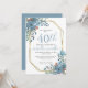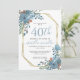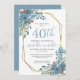 A lush watercolor dusty blue rust floral 40th birthday invitation with gold frame. Solid dusty blue on the back of the invite. A lush and pretty watercolor design.