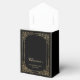 Thank birthday party guests with these elegant favour boxes, featuring an ornate rectangular faux gold frame a black background, with a faux gold foil and satin striped back and flap. Personalise them with the guest of honour's name in gold coloured script, along with the occasion and date in gold copperplate font.