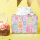 40th birthday bright pastel cakes, party hats, balloons and presents are scattered on this festive wrapping paper.