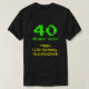 This silly and nerdy shirt design features the message "40 YEARS OLD!", the birthday greeting message "Happy 40th Birthday,", and a personalised name. The upper age digits and text feature a geeky, green, pixelated, 8-bit graphics style appearance inspired by that of old-school computer games and 80s era video games. The lower greeting message has a nerdy, yellow, vintage digital computing inspired appearance. Shirts like this might be worn by the attendees at a birthday party being held to celebrate the 40th birthday of somebody who enjoys vintage video games or retro computers. [~Z0000455]