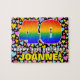 This exciting and bold birthday-themed jigsaw puzzle design features a large number “40” with a multicolored rainbow spectrum inspired gradient pattern, along with the message “HAPPY 40th BIRTHDAY,”, and an editable recipient name. The background features an upbeat pattern of hearts of various sizes and colours. A colourful, customised birthday puzzle like this might be given to celebrate somebody’s fortieth birthday. [~Z0000611]