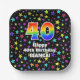 40th Birthday: Fun Stars Pattern and Rainbow “40” Paper Plate