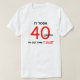 If you are in search of a 40th birthday gift and have run out of ideas, how about this great funny 40th birthday milestone t shirt? The t shirt reads "It took 40 years to get this t shirt." The text is written in black and red when needed for emphasis. This makes a wonderful unique gift idea for any 40 year old man. Copyright Kathy Henis