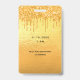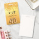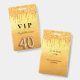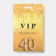 A modern, stylish and glamorous badge for a 40th birthday party. A fauc gold metallic looking background with faux glitter drip, paint dripping look. The name is written with a modern hand lettered style script. With the text: VIP Number 40 is written with a balloon style font, script.