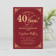 Elegant vintage red and faux gold design with damask pattern. Features script font. Cheers to 40 years! Can be personalized into any age! Message me if you need further customization.