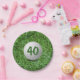 Number 40 on white golf ball on green grass for golfer's birthday party.