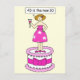 A cartoon lady standing on a giant cake with cocktail in one hand, saying '40 is the new 30'.