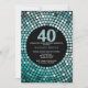 40th Birthday Invitation. Black and Teal Glitter. Teal Diamond. Adult Birthday Party. For Men or Women. For further customisation, please click the "Customise it" button and use our design tool to modify this template.