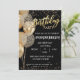 Celebrate your 40th milestone with this glamorous personalized birthday invitation. The design features shimmering faux gold foil and glitter balloons and confetti floating against a chic black background, creating a luxurious party announcement. This modern and sophisticated template is perfect for a men's or women's 40th birthday, easily customizable for any adult celebration or milestone event. Announce your party with dramatic elegance!