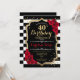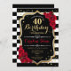 40th Birthday Invitation Black White Stripes Roses