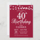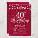 40th Birthday Invitation with String Lights. Burgundy Red Background. 13th 15th 16th 18th 20th 21st 30th 40th 50th 60th 70th 80th 90th 100th, Any age. For further customisation, please click the "Customise it" button and use our design tool to modify this template.