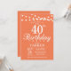 40th Birthday Invitation with String Lights. Coral Background. Women Female Lady Elegant Modern bday. 13th 15th 16th 18th 20th 21st 30th 40th 50th 60th 70th 80th 90th 100th, Any age. For further customisation, please click the "Customise it" button and use our design tool to modify this template.