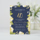 This elegant and classy fortieth birthday invitation features an illustrated floral border and the number "40" in gold. The background is a navy blue colour, but can be customised to any colour you choose. The back of the invite includes a gold quatrefoil pattern with a matching blue background that can also be swapped out. The text is customisable for your special milestone birthday celebration event.
