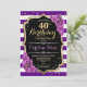 40th Birthday Invitation. Elegant purple gold black design with faux glitter. Women's birthday party invitations. Milestone adult birthday invites. Features purple stripes, roses script font and confetti. Feminine floral design. Can be customized to show any age.