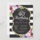 40th Birthday Invitation Women. Floral Gold Black