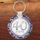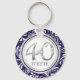 40th Birthday Key Chain-Navy Blue & Silver Ring