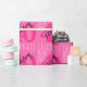 A modern mix of casual, script and serif typography in a fun combination of pinks makes a festive 40th birthday wrapping paper that you can customise for any name.