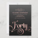 Set the tone for a chic celebration with our elegant black and rose gold 40th birthday invitation. Featuring bold, retro typography and a sleek design, this invitation exudes a glamourous and stylish vibe—perfect for a women's 40th birthday party. Choose to order printed invitations or download digital invitations for instant access. Make this milestone birthday unforgettable—order your elegant birthday invitations now!