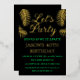 Hello Forty. Modern, QR Code, neon green, black and gold foil, stylish 40th birthday invitations. You can personalise it with your own details.