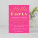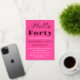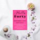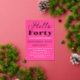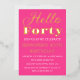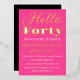 Hello Forty. Modern, QR Code, neon pink, black and gold foil, stylish 40th birthday invitations. You can personalise it with your own details.