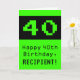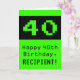 40th Birthday: Nerdy / Geeky Style "40" and Name Card