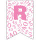Decorate for your 40th birthday with flags with your text over a pink and white number pattern. The number pattern is digital art created with the number 40 scattered in different sizes and angles for an all-over print. Each flag has room for one letter or number; there is a text template for each flag to make it easy for you to customise. You can put a letter or number on each flag, or replace the letters an asterisk or remove them.