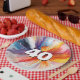 Contemporary abstract watercolor paint explosion for 40th birthday party.
