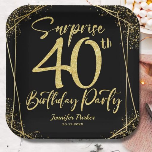 Throw a dazzling celebration with our "40th Birthday Party Black Gold Glitter Invitation!" Perfect for a glamourous and unforgettable event. Shop now and make the surprise truly sparkle! ✨🎉 Please note: The gold glitter effect is simulated, no real glitter is used