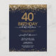 Elegant Faux gold glitter with shimmering confetti highlights on the top and bottom border. All text is adjustable and easy to change for your own party needs. Great elegant 40th birthday template design.