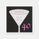 Just say cheers and grab a personalised 40th birthday party cocktail paper napkin! These fun disposable napkins feature a glass on a black background with pink accents. The glass features the words "Cheers to" in the glass and the name of the birthday woman on the glass. The number 40 appears in pink on the side of the glass. These napkins are a great addition to a 40th birthday party for women. Copyright henishouseofpaper