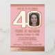 Bold simple graphic dusky pink, and rose gold foil or your own foil colour photo template 40th birthday party invitation. Personalise this beaded milestone birthday invitation with your own birthday party event details, and a photos of your birthday girl in the centre of the 0 in 40 and one full bleed out photo on the reverse. Other years colours and matching items are available. © Original design by Sarah Trett for www.mylittleeden.com on Zazzle.
