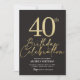 40th Birthday Party Elegant Black & Gold Glitter Invitation