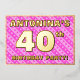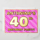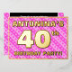 The front of this joyful and upbeat fortieth birthday celebration foil invitation card design features a customisable name, a large number “40th”, the message “BIRTHDAY PARTY!”, and a border. The background of the front features a loving dark pink and light pink striped pattern, with heart shapes. The back features personalised details about the event, such as the date, time, location/venue, and any other useful information. Editable invitations like these might be a fun way to invite guests/attendees to a birthday gathering/party being held to celebrate somebody’s 40th birthday. [~Z0000603]