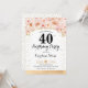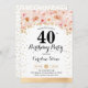 40th birthday party invitation. Elegant design in faux glitter gold with floral accent. Invite card with script font and confetti. Blush coral pink, white. Perfect for a stylish thirtieth bday celebration. Message me if you need custom age.