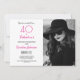 An elegant 40th birthday photo invitation for celebrating your fortieth birthday featuring pink typography. You can personalise these invitations with your own photo and party details. The back of the invitation has a black and light grey tone scallop style design. The text colours can be changed by clicking on the "Customise It" button.