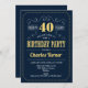 Elegant navy blue, gold and white retro design with script font. Cheers to 40 years! Message me if you need further customization.